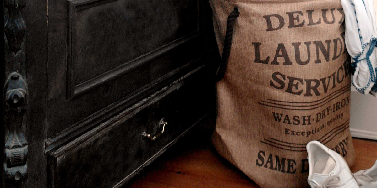 Vintage Wäschetonne ✓ Design: Laundry ✓ Creme mit Print und Slogan "Wash dry Fold" ✓ 50x40cm ✓ Fassungsmenge ca. 62 Liter ✓ mit 2 Tragegriffen lin...