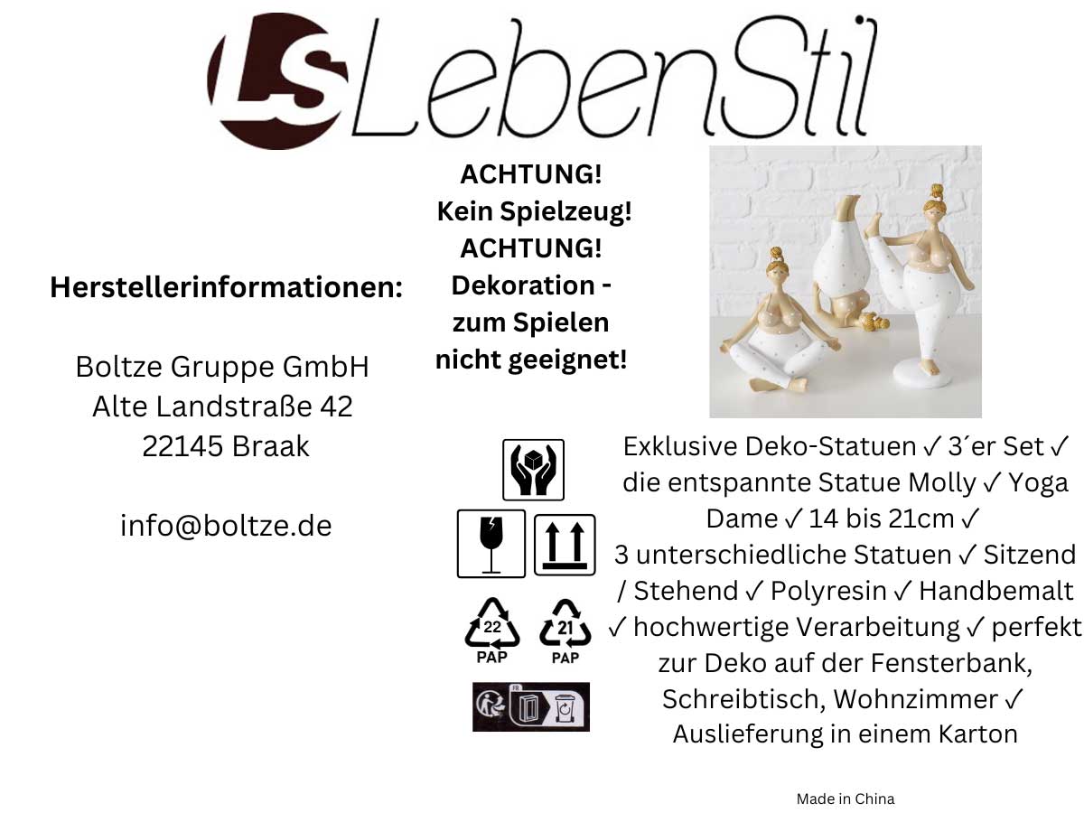 Exklusive Deko-Statuen ✓ 3´er Set ✓ die entspannte Statue Molly ✓ Yoga Dame ✓ Beige Braun Weiß ✓ 14 bis 21cm ✓ 3 unterschiedliche Statuen ✓ Sitzend / Stehend ✓ Polyresin ✓ Handbemalt ✓ hochwertige Verarbeitung ✓ perfekt zur Deko auf der Fensterbank, Schreibtisch, Wohnzimmer ✓