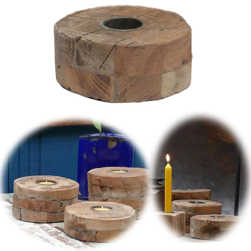 Exklusiver Kerzenleuchter ✓ Holz Metall ✓ Baumstamm ✓ Indisches Eukalyptus ✓ massive Ausführung ✓ ohne Dorn ✓ für 4 Stumpenkerzen / LED-Kerzen / T...