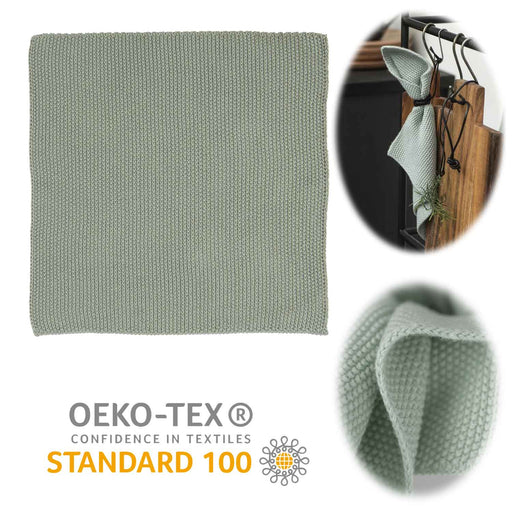 Exklusiver Topflappen ✓ 100% Baumwolle ✓ wiederverwendbar ✓ OEKO-TEX 100 ✓ Serie Mynte gestrickt ✓ Staubig Grün ✓ Statement für Nachhaltigkeit und...