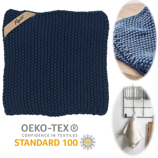 Exklusiver Topflappen ✓ 100% Baumwolle ✓ wiederverwendbar ✓ OEKO-TEX 100 ✓ Serie Mynte gestrickt ✓ Midnight Blau ✓ Statement für Nachhaltigkeit u...