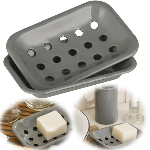 Design Seifenteller ✓ wie zu Oma´s Zeiten ✓ Emaille ✓ 2-teilig ✓ Grau ✓ stehend / liegend ✓ ca. 15x10x2cm ✓ Seifenschale gelocht ✓ mit Ablauf / Au...