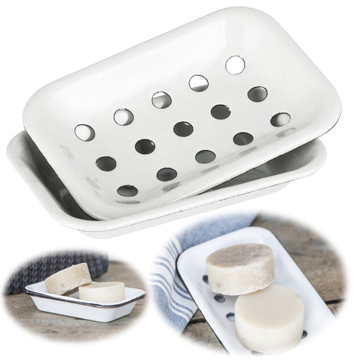 IB Laursen Emaille Seifenschale 2-tlg Weiß 15cm Altum Seifenablage mit Ablauf