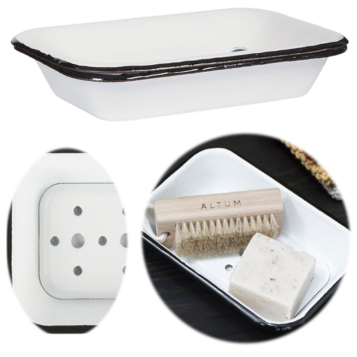 IB Laursen XL Emaille Seifenschale 2-tlg Weiß 17cm Altum Seifenablage mit Ablauf