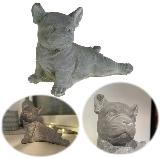Design Deko-Statue ✓ Bulldogge Frenchie ✓ mit kaputten Ohr oder Schwanz ✓ Steinfigur ✓ Shabby Grau Weiß gekalkt ✓ sitzend / liegend ✓ ca. 20x16x18...