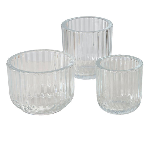 Design Teelichtgläser ✓ Glas ✓ Set: 3 Kerzengläser ✓ 3-teilig ✓ Klar Klarglas / Weiß ✓ 9x9cm | 8x10cm | 8x7cm (HxØ) ✓ Windlicht Kristall Relief Or...