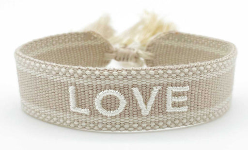 Exklusives Quasten Stoffarmband ✓ bestickt ✓ Slogan: Love ✓ Beige / Creme ✓ Boho & Hippie Style ✓ ca. 16-20 x 1,9cm ✓ waschbar ✓ cool und tren...