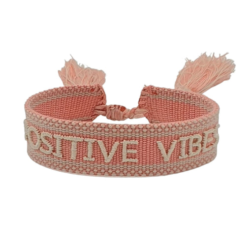 Vollständige Details anzeigenCanvas Statement Armband Good Vibes Neon Pink Orange Quasten besticktes Webarmband