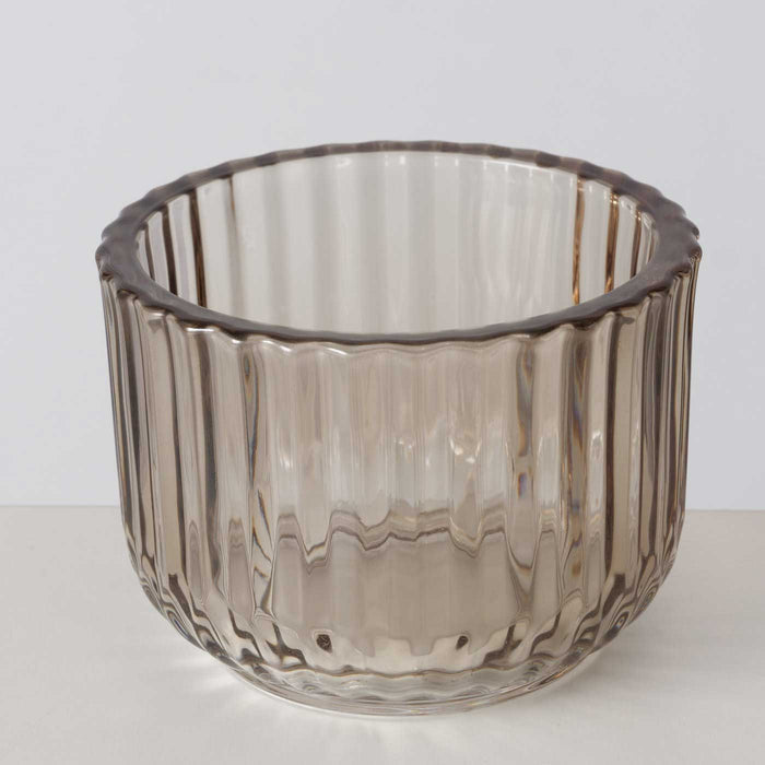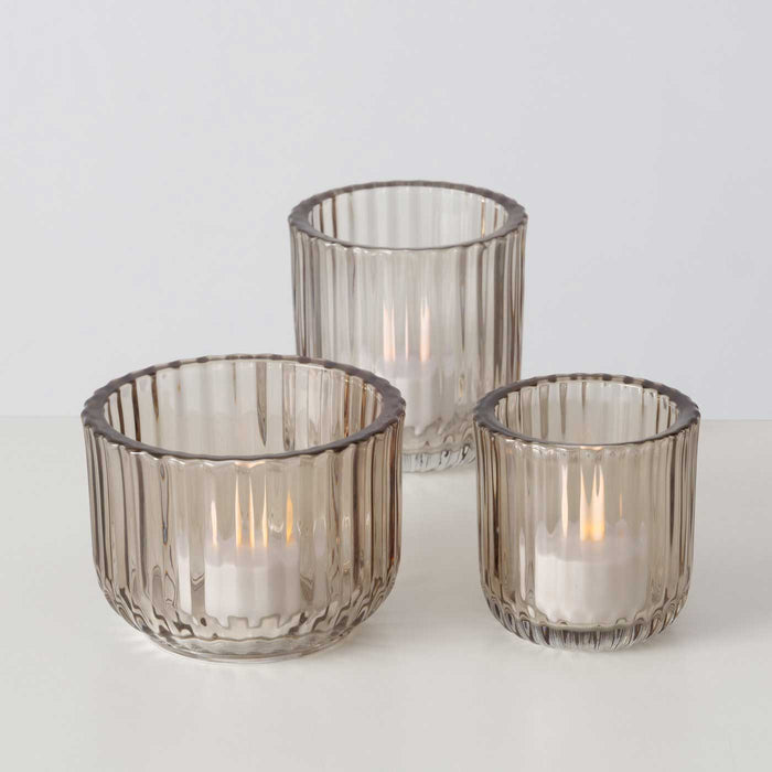 3er Set Teelichthalter Glas Retro Beige 7-9cm Teelichtglas Windlicht Kerzenhalter