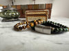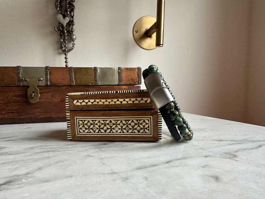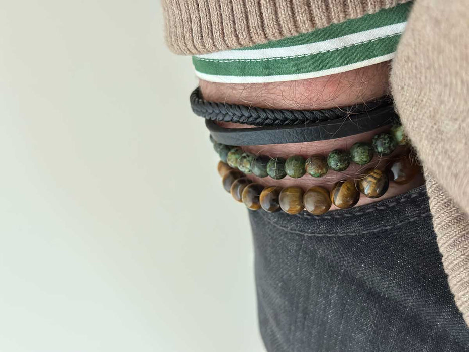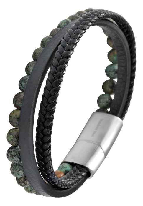 Design Unisex Lederarmband 21cm Sóller Dreifach Schwarz Grün Natursteine Echtleder