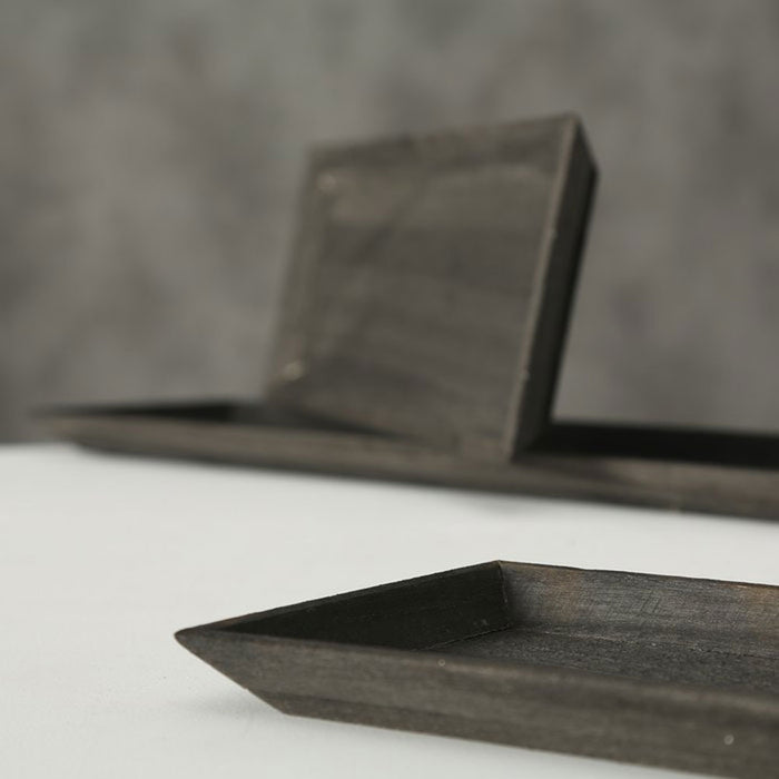 Design Deko-Tablett ✓ Modell Sylt ✓ Blauglockenbaum - Paulownia ✓ Shabby Schwarz ✓ ca. 55x16x3cm ✓ rechteckig / länglich ✓ Deko-Schale mit erhöhter Rand ✓ universal einsetzbar ✓ perfekt als Kerzen-Tablett, Kerzen-Teller, Kerzen-Schale, kleines Hocker-Tablett ✓
