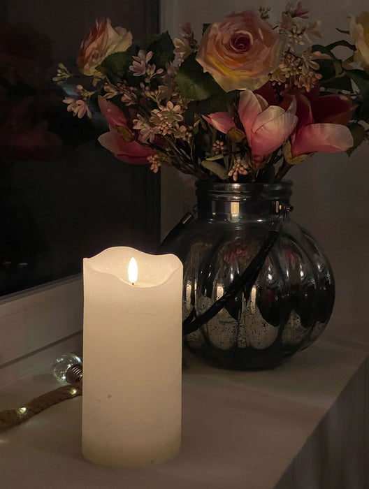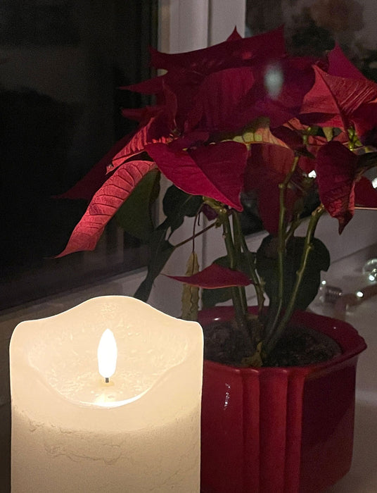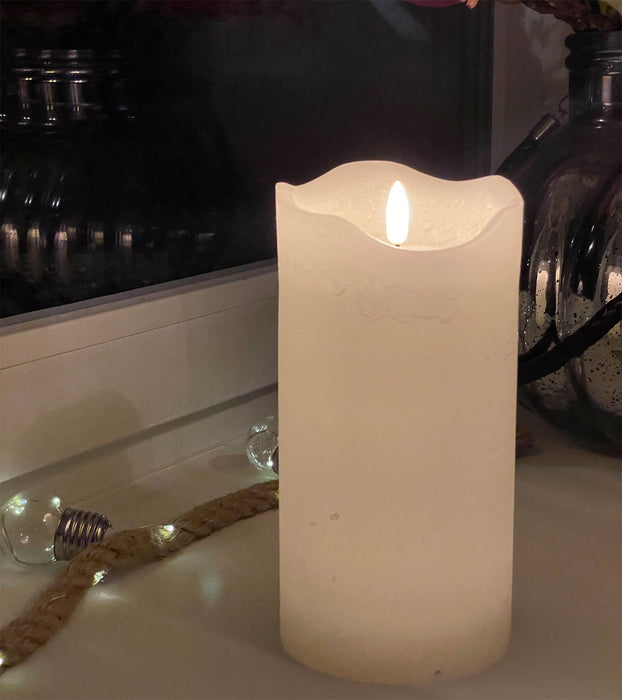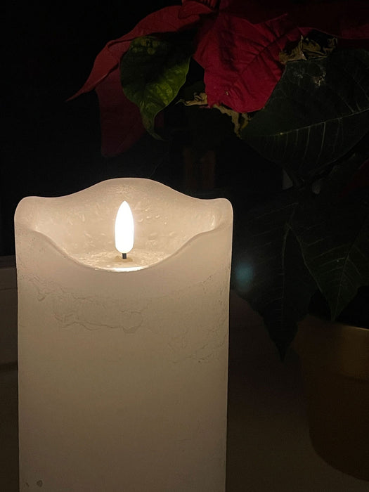 LED 3D Stumpenkerze Creme Weiß 20cm Timer Echtwachs flackernde flammenlose Kerze