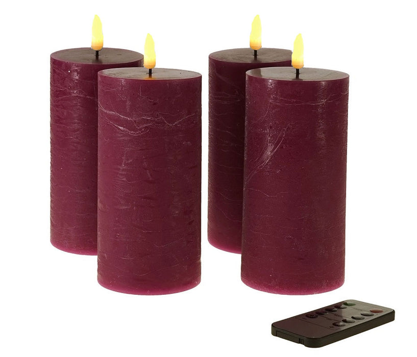 LED 3D Stumpenkerzen 4´er Set Lila 15cm Timer Fernbedienung flackernde Kerze