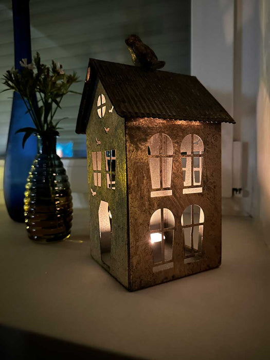 Das hochwertig verarbeitete Lichterhaus hat auf der Vorder- und Rückseite einen offenen Bereich, wo du problemlos ein Teelicht mit einem Durchmesser von bis zu 5cm platzieren kannst und wenn du dann die Kerze anzündest hast, erleuchtet das Haus mit seinen Fernstern in einem traumhaften Licht und verzauberst dein Heim in eine kuschelige Wohlfühloase und mit dem zeitlosen Design ist es das leuchtende Wohnaccessoire für deine Räumlichkeiten