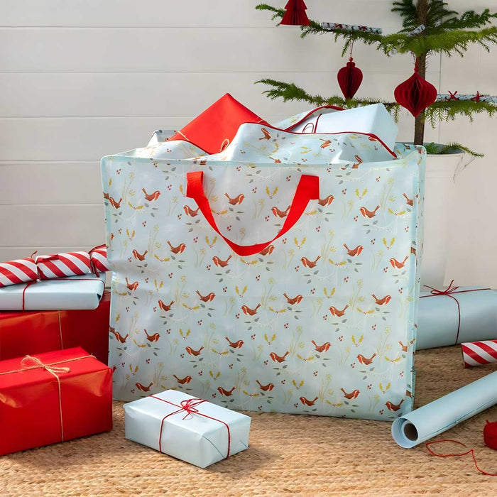 XXL Jumbo Bag Winter Walk -Vögel 55cm Recyclet Aufbewahrungstasche Einkaufstasche